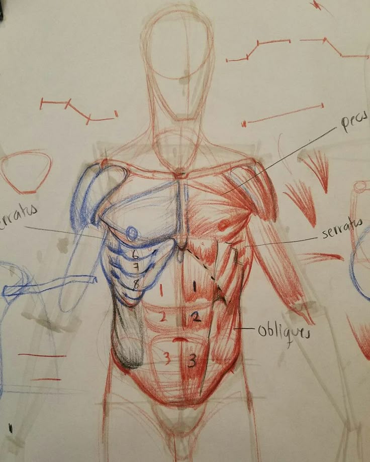 Когда художники впервые начинают уделять больше внимания добавлению анатомии в свои рисунки, они часто склонны чрезмерно подчеркивать анатомию.
