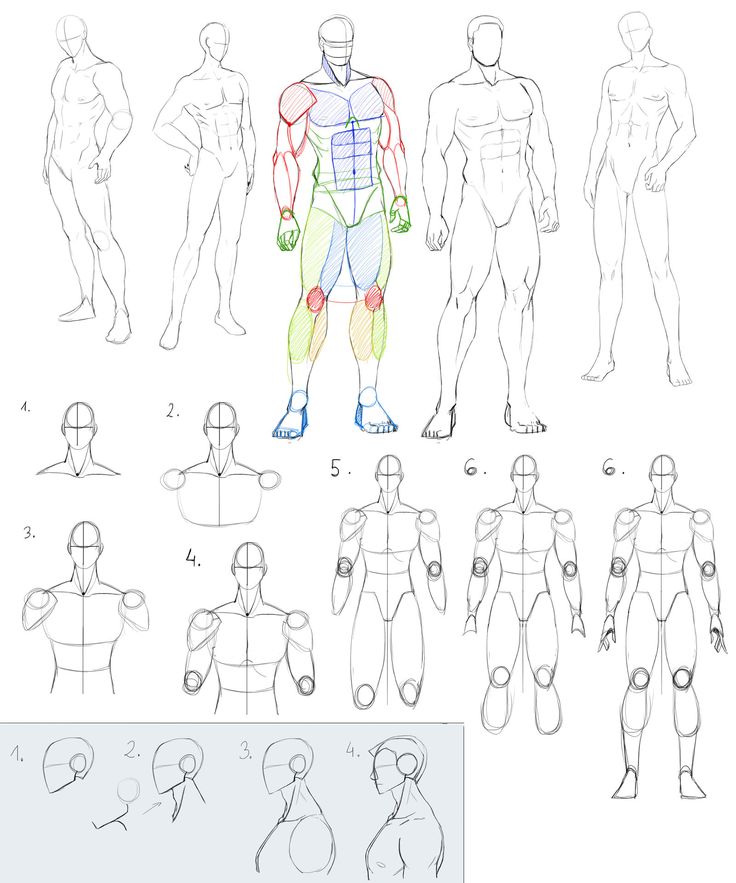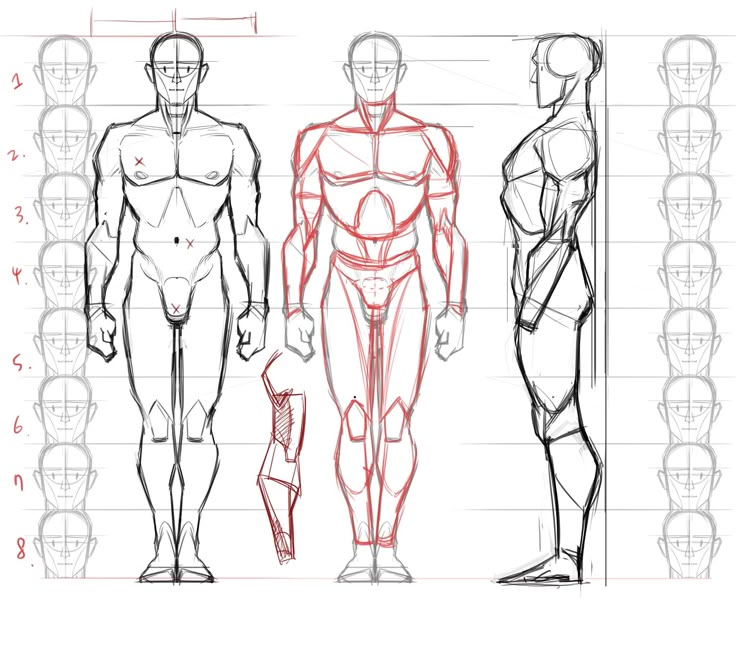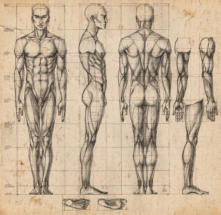 Анатомия человека для рисования для начинающих в живописи делит тело на 8 основных частей:
