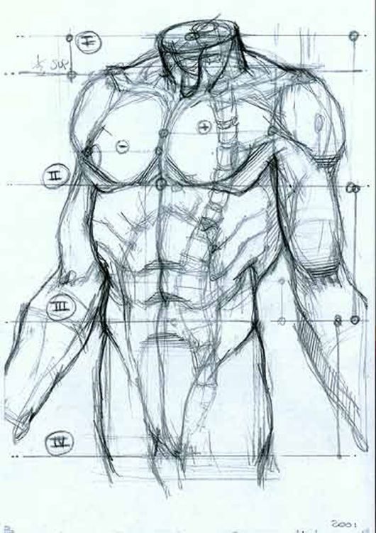 Объемы мышц предназначены для того, чтобы вести глаз через тело к точке действия. Читатель не перестает смотреть на хорошо развитую мускулатуру персонажа.