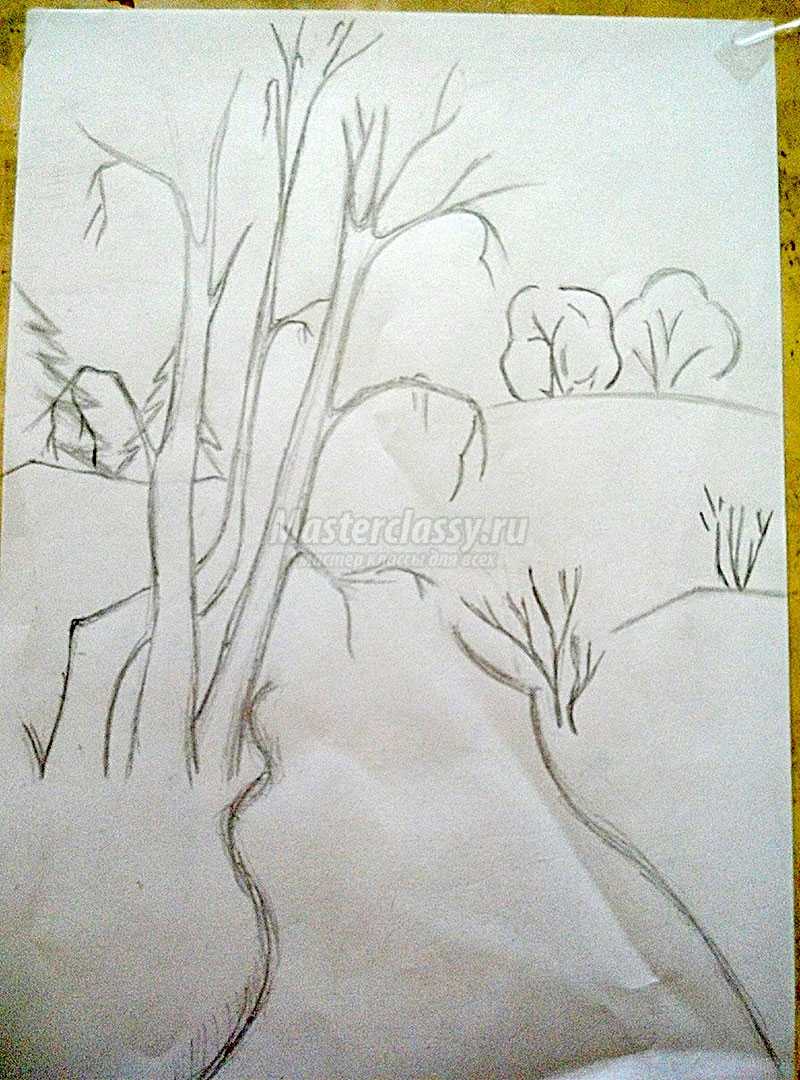 Как нарисовать осенний пейзаж поэтапно 2 урока