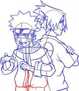 Как нарисовать Наруто и Саске карандашом поэтапно
