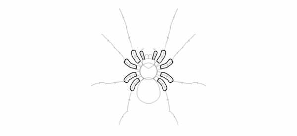 Шаг 9. В этом шаге завершим рисование формы ног, изобразив три задние лапы паука.