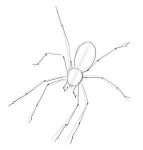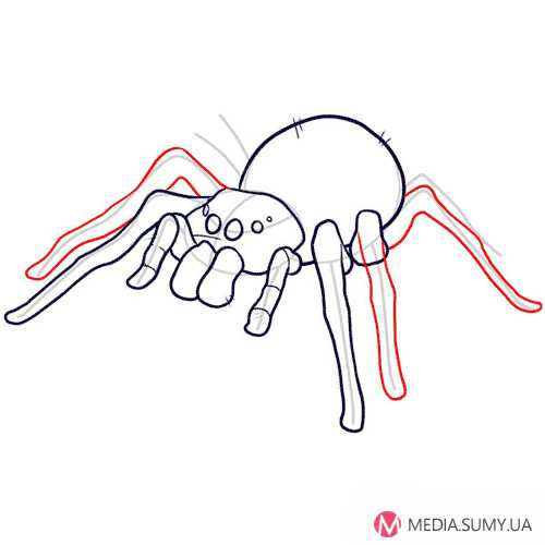 Шаг 8. Нарисуем еще три лапки паука. В частности форму второй и правую ногу третьей пары лап.