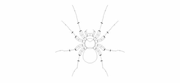 Таким же образом дорисовываем остальные сегменты лапок. Не забываем о толщине каждого сегмента.