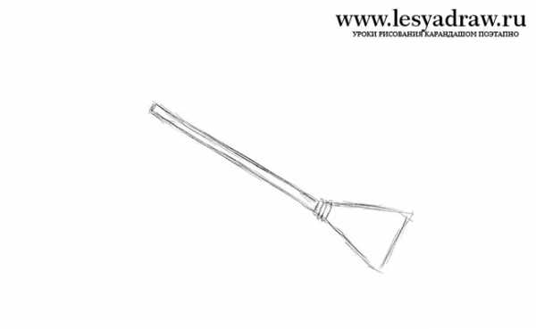 Сотрите ненужные линии и нарисуйте звездочку на колпаке. Сотрите нижнюю границу веника и от основания сделайте много прямых.