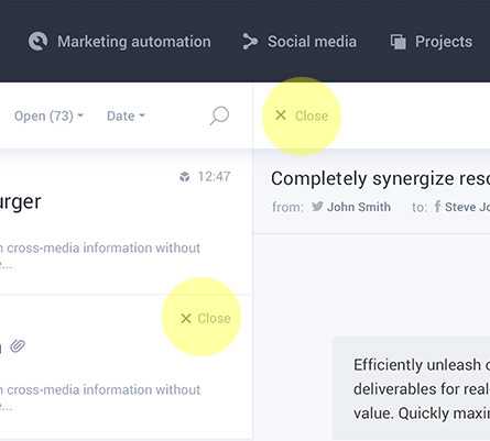 Мы не должны обязывать пользователя тянуться в другую часть экрана, чтобы получить расширенный функционал. Если пользователь работает со списком, то кнопка создания нового элемента должна быть поблизости. Или если мы порождаем новый попап кликом по кнопке слева внизу, то абсурдно заставлять пользователя тянуть курсор по диагонали направо вверх, чтобы окно закрыть.
