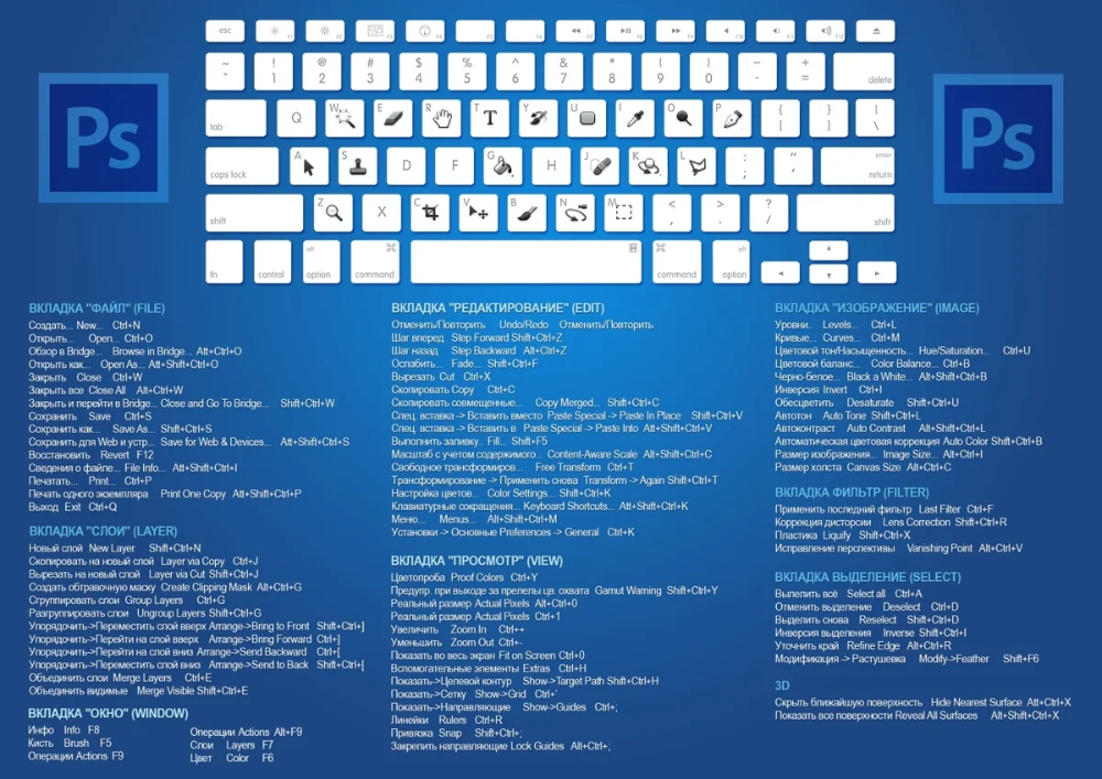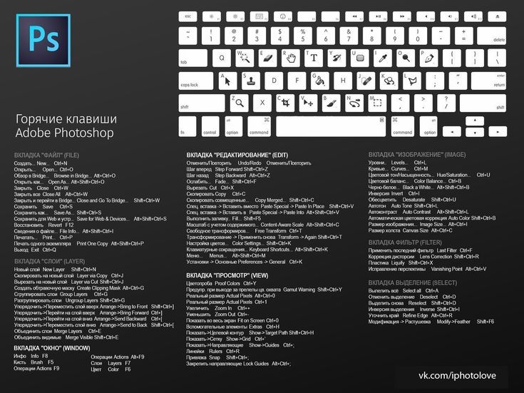 Комбинации клавиш по умолчанию в Adobe Photoshop