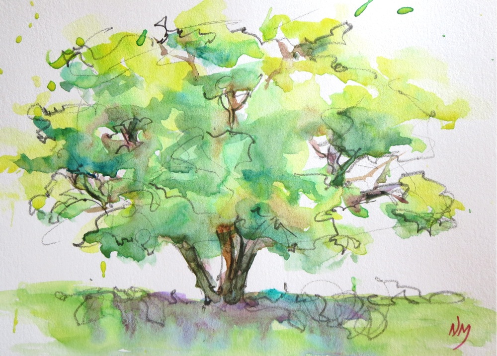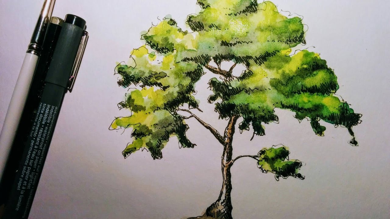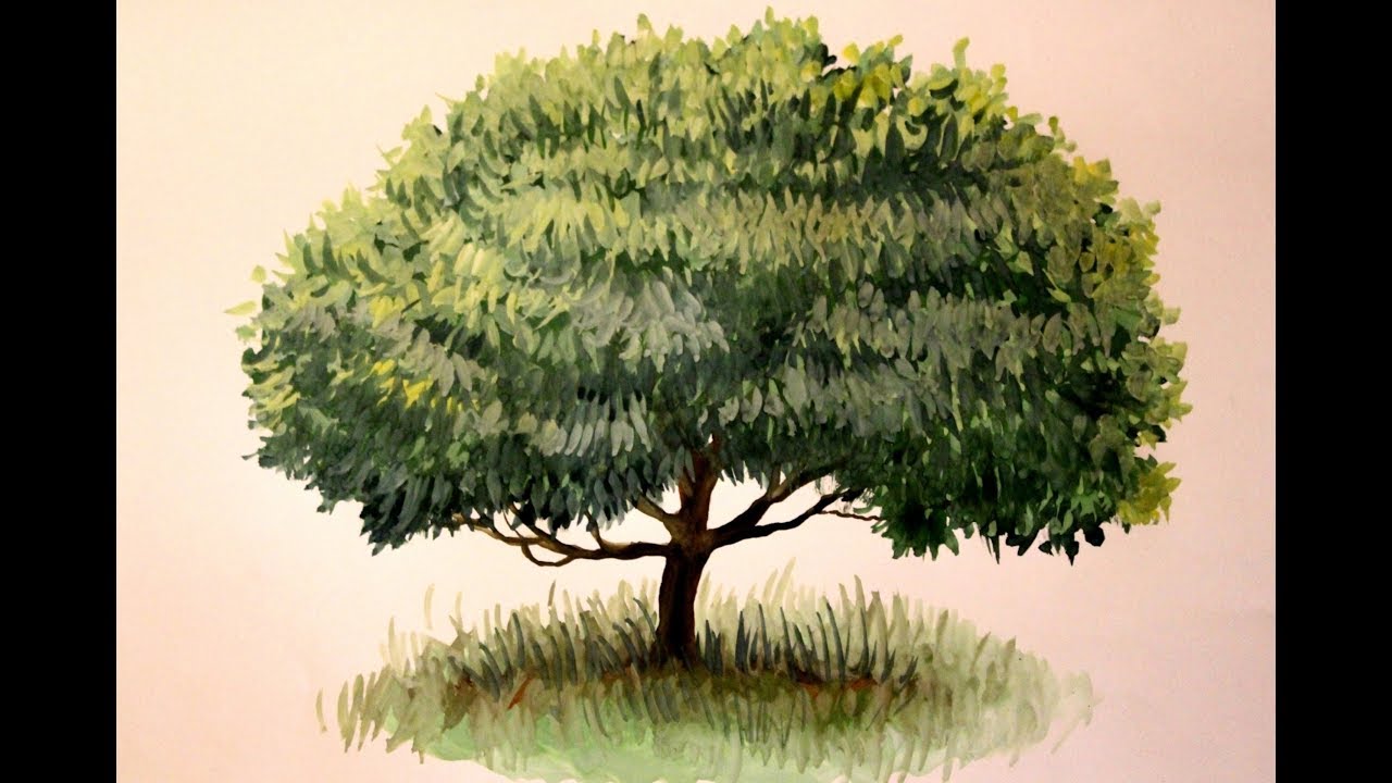 акварельное дерево поэтапно, как рисовать деревья и листья акварелью