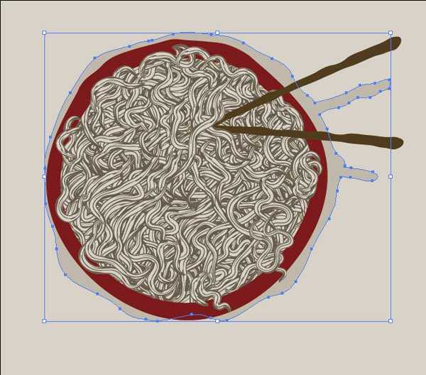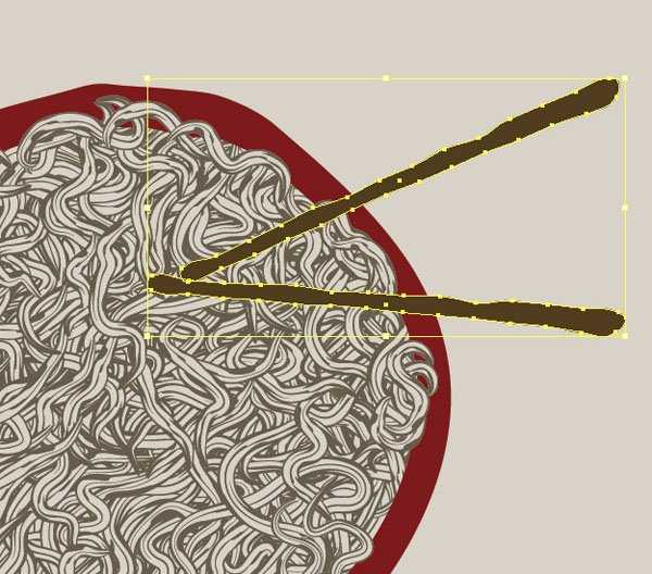 Наконец нарисуйте над фоновым слоем тень от тарелки с палочками и укажите ей цвет заливки #C1B9AA.