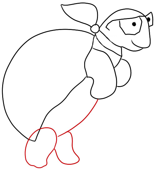 От шеи, посередине и сзади нарисуйте три черепашьи лапки с аккуратными когтями. Третья лапа скрыта за туловищем.