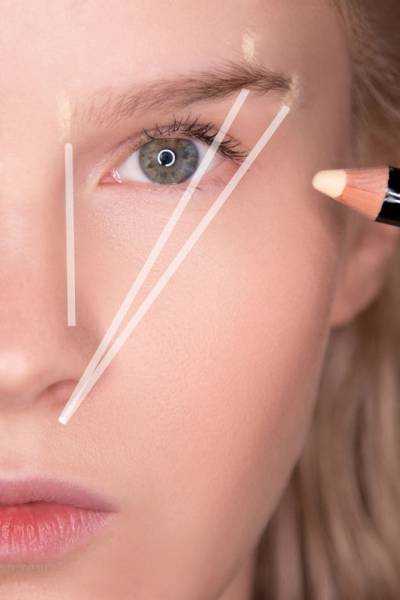 Постройте воображаемую линию от внешнего края ноздри вверх через внутренний уголок глаза. Точка, в которой эта линия будет пересекаться с надбровной дугой, должна служить началом брови.