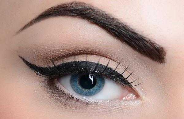 На верхнем веке обычно хорошо смотрится тонкий слой теней белого цвета, это делает бровь чуточку выше, а взгляд становится более выразительным.