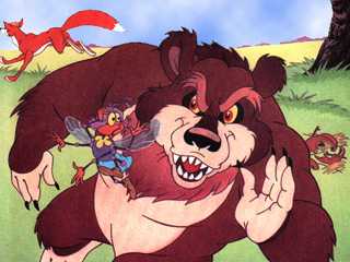 Вдруг идет медведь косолапый. Увидел медведь теремок, услыхал песни, остановился и заревел во всю мочь: