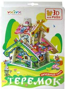 избушка-теремок 3D пазл, Это увлекательное соединение мозаики puzzle и конструктора. Легкие и прочные детали без особых усилий складываются в интересную трехмерную игрушку. Материал плотный - пенополиэтилен и цветной картон, толщина 0.5 см.