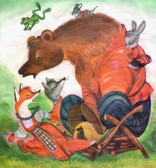 — Ну так полезай! Влез медведь на крышу и только уселся — трах! — развалился теремок.